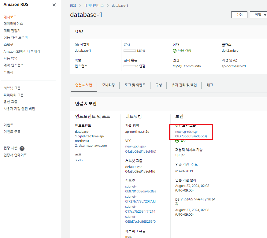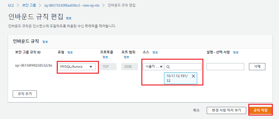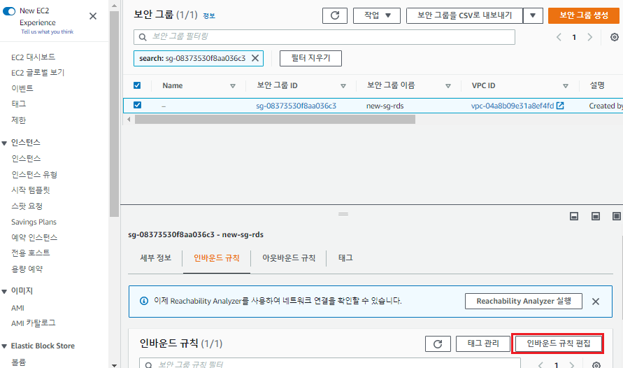 - RDS 서비스에서 보안그룹 항목으로 들어가기