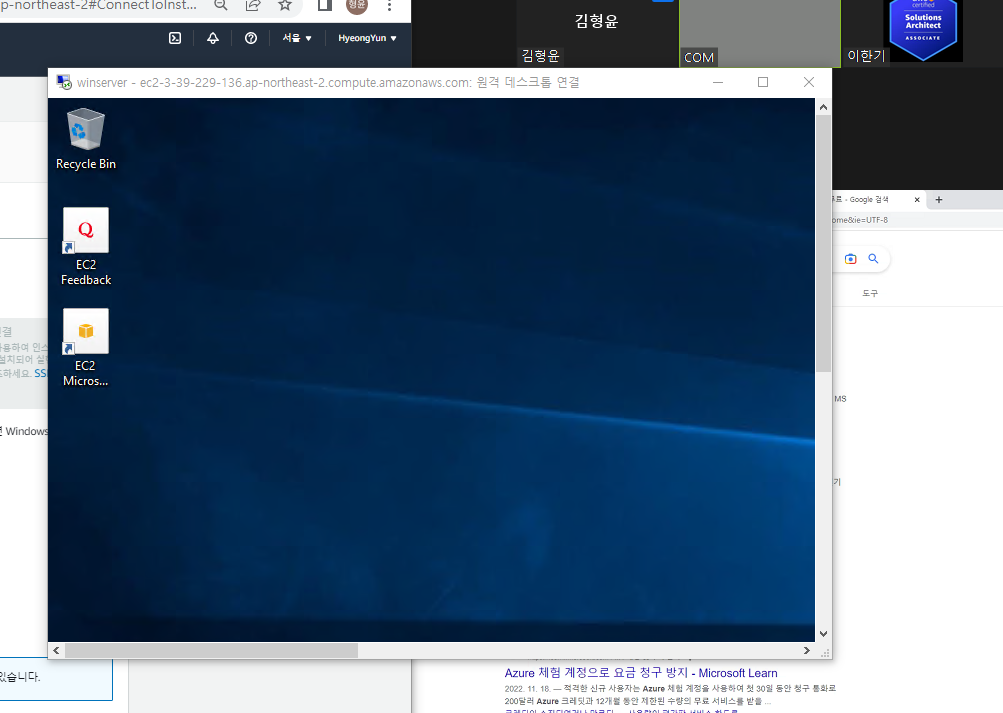 - 보안 그룹에서 3389 포트(원격 데스크톱)를 열어주면, 강의장 PC로 원격 접속이 가능해진다