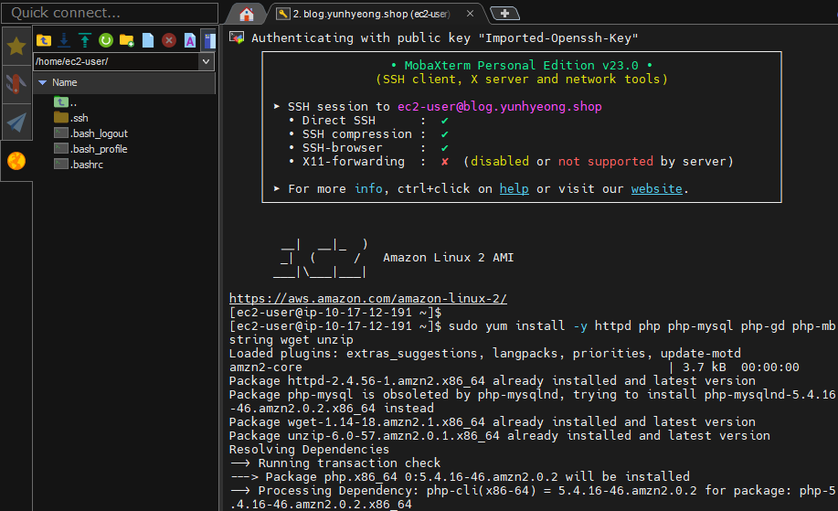 sudo unzip /home/ec2-user/wordpress-4.8.2-ko_KR.zip