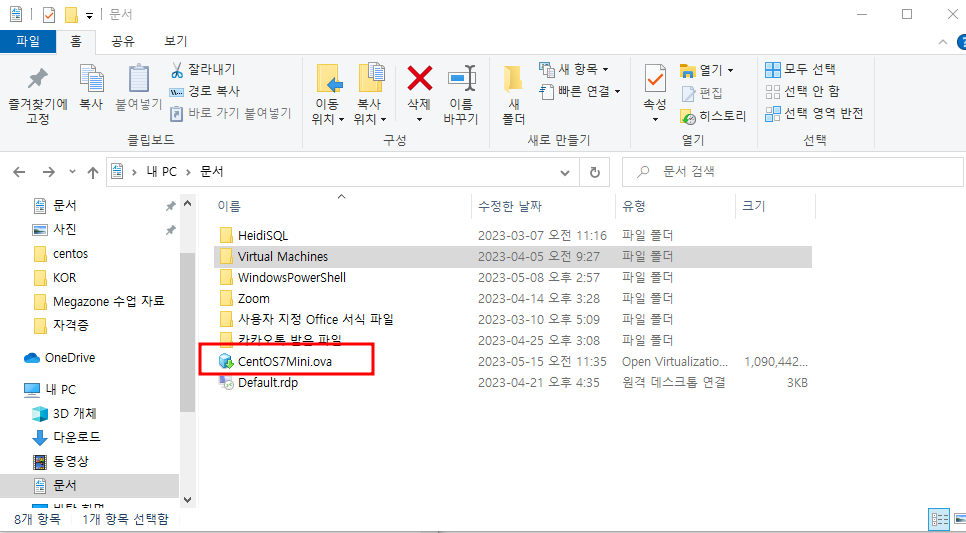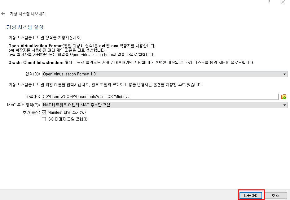 - 왼쪽 파일 버튼 누르고 가상머신 내보내기 클릭