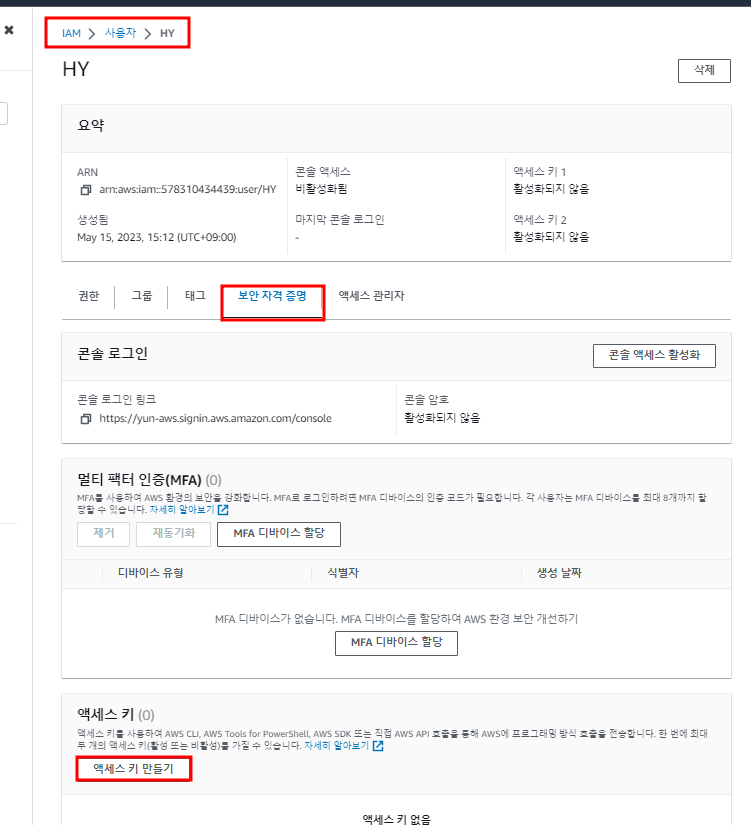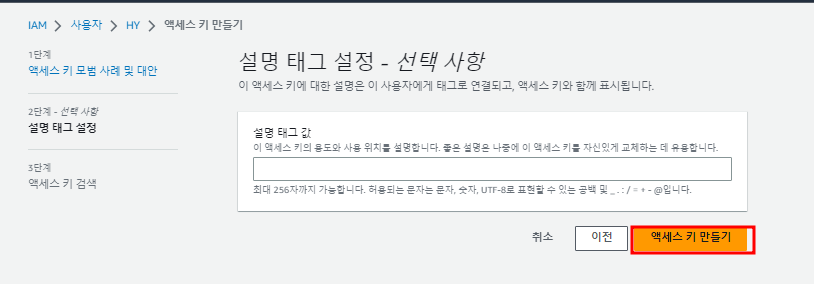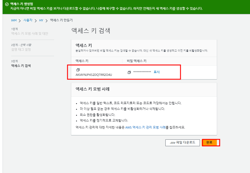 - 엑세스 키 생성