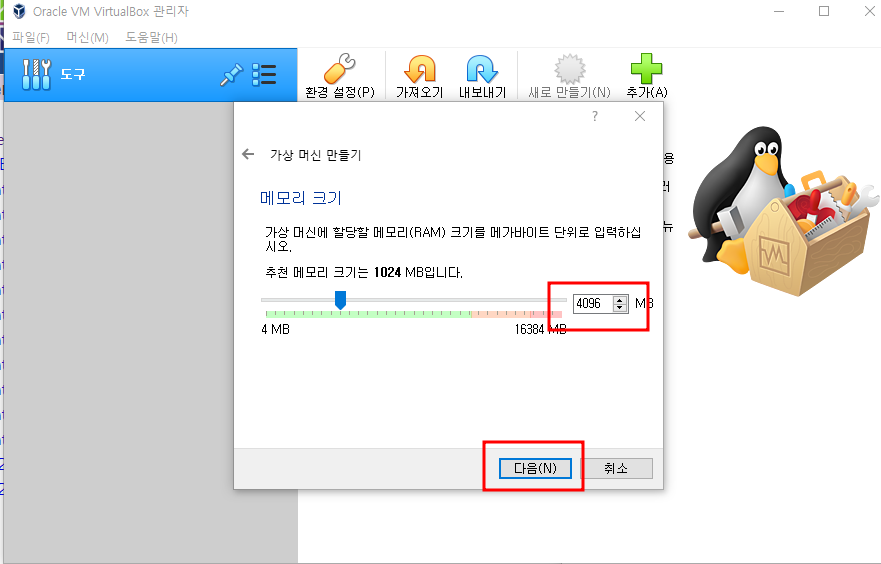 - RAM 크기 지정