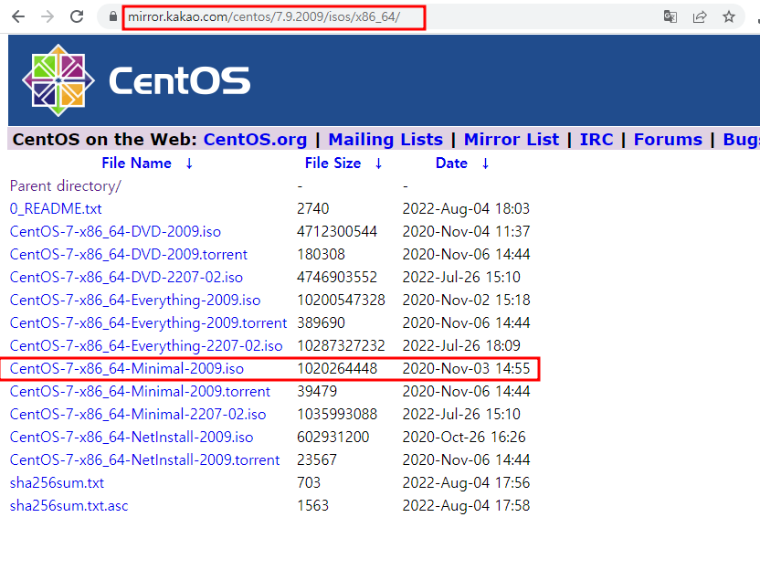 - centos-7-minimal iso 다운로드