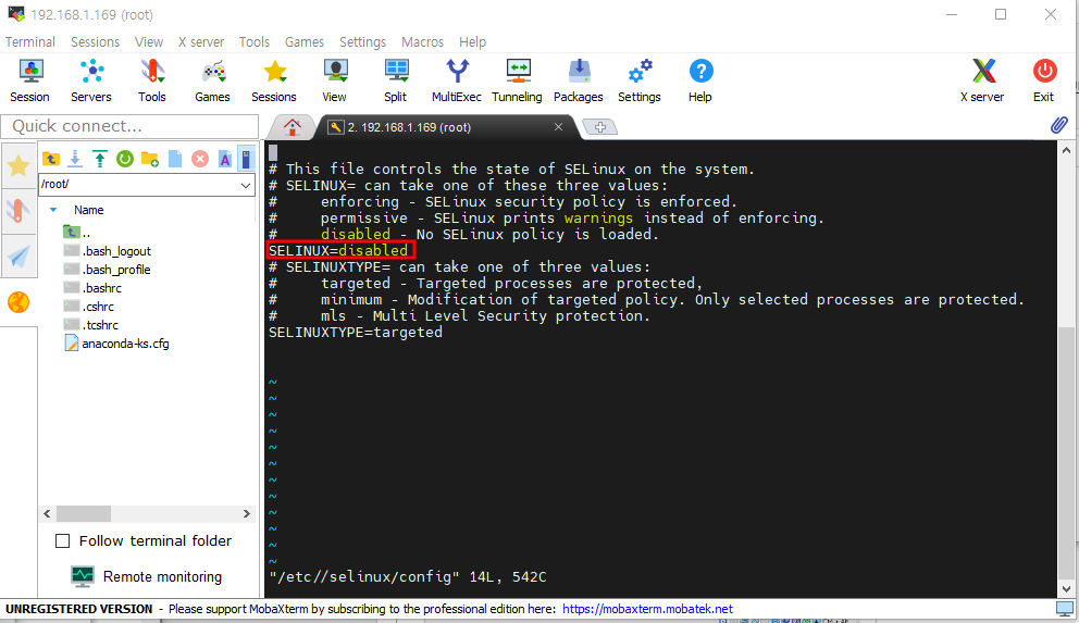 SELINUX=disabled
