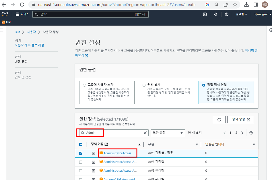 - admin 권한 주기
