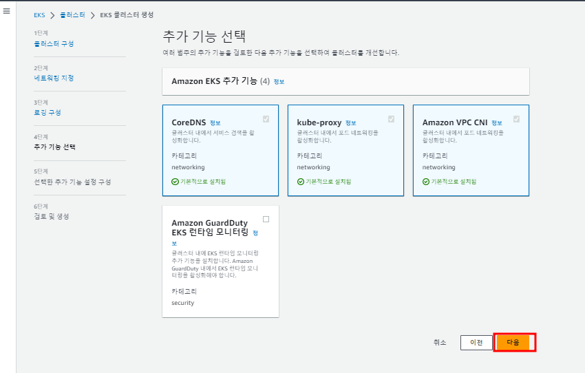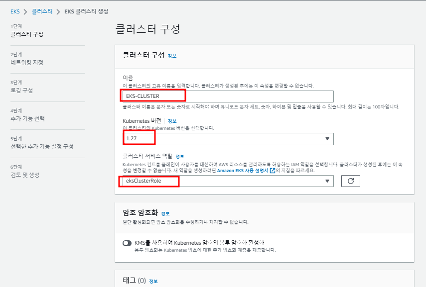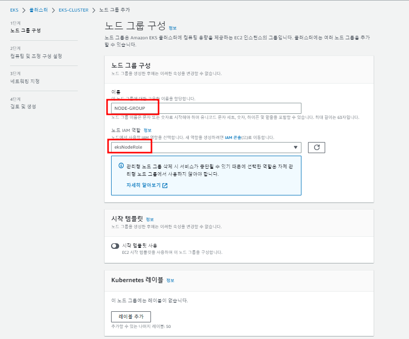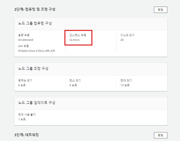 - OS 이미지, 용량 유형, 인스턴스 타입, 노드 수를 설정