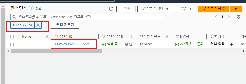 - pod 중 하나의 IP를 인스턴스에서 검색한다