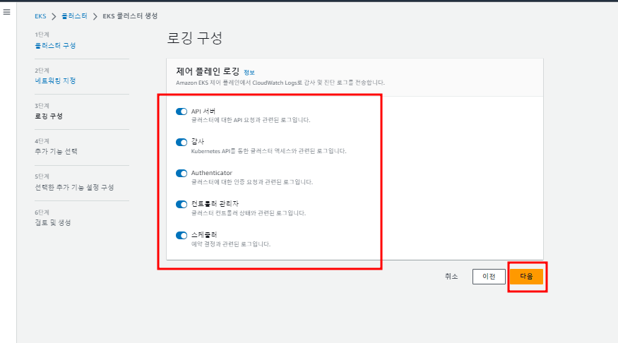 - 역할과 이름 설정 후 다음 버튼 클릭