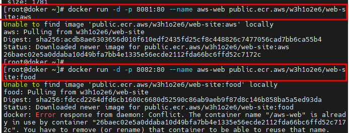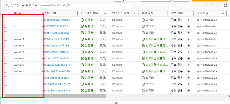- 이름을 각각 aws-web, aws-food로 지정( 밑에 aws-web은 잘못 지정한 것)