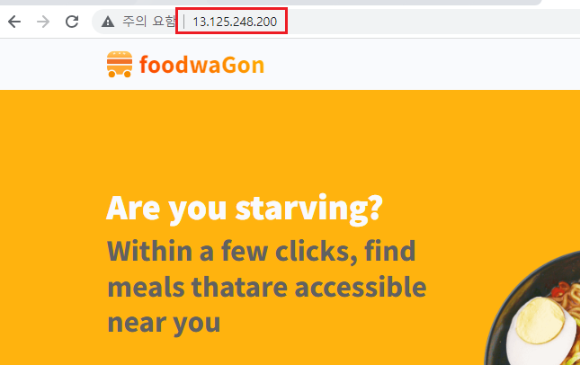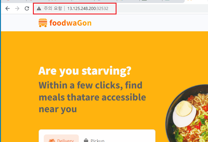 - food 이미지로 만든 8082 포트 컨테이너에 접근