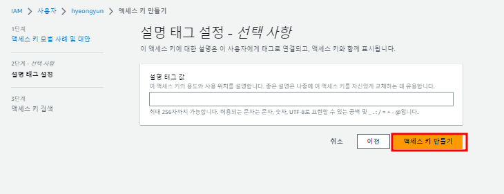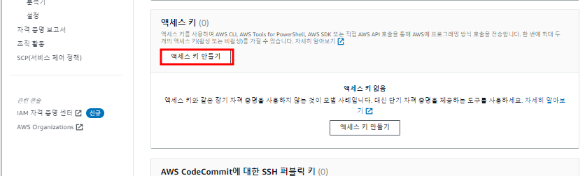 - 액세스 키를 생성하고 .csv 파일을 다운 받는다