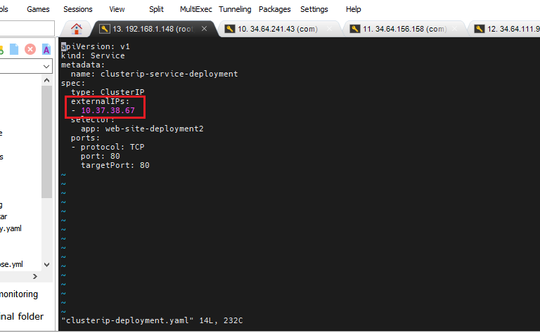 - vi clusterip-deployment.yaml을 생성하고 다음과 같이 수정한다.