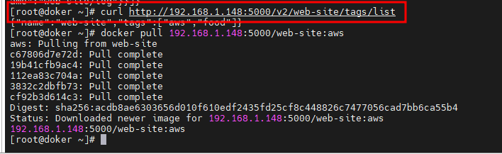 - 도커 사설 레지스트리에 있는 이미지들 확인