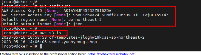 - aws configure 명령어를 치고 자격증명을 마친다.