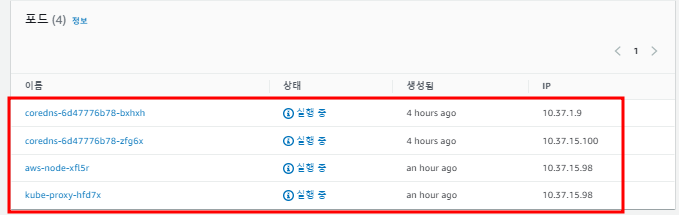 - 시스템 pod 2개와 내가 만든 파드 2개로 구성되어 있었다.