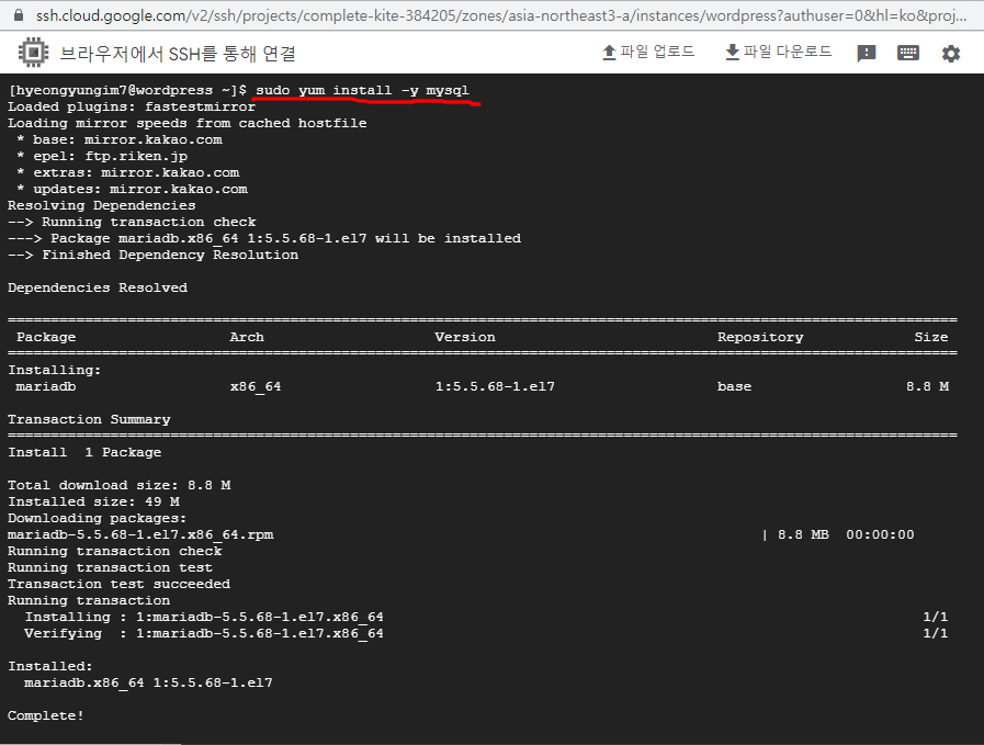 - wordpress(centOS)서버에서 mysql을 설치한다.