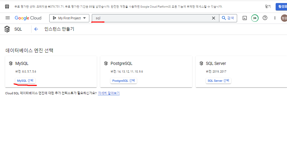 - sql을 검색하고 MySQL 선택 클릭