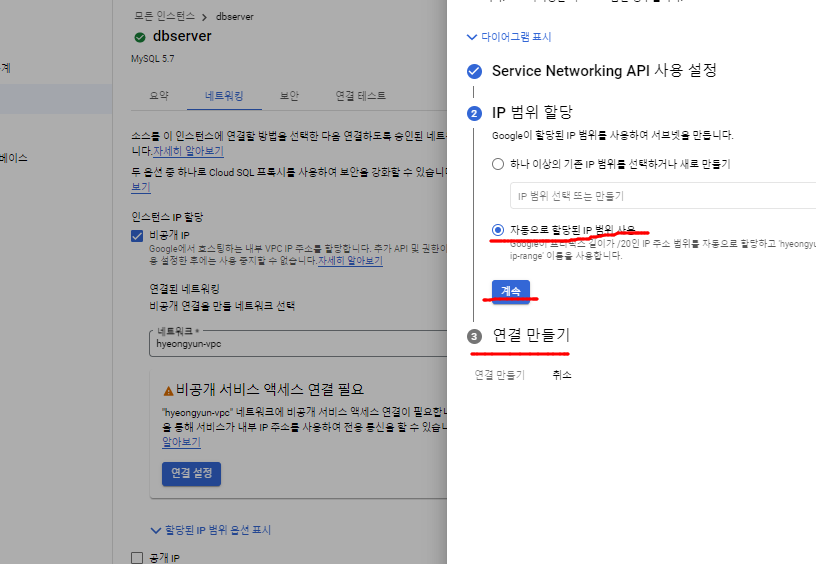 - db 인스턴스에 내부 IP 자동으로 할당