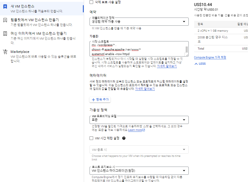 - DB서버에 접근하기 위한 CentOS VM 인스턴스를 하나 만들어 준다. 이때 사용자 시작 스크립트 설정이 가능하다