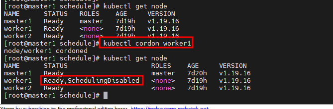 * 커든 명령은 지정된 노드에 추가로 파드를 스케줄하지 않는다.