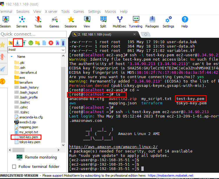 - 왼쪽 탭에서 test-key.pem내려 받기