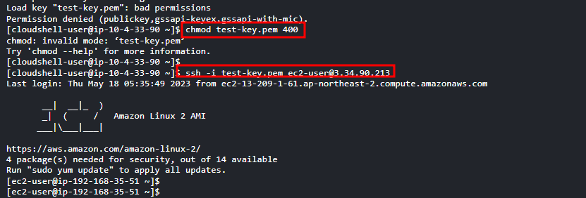 - test-key 파일 AWS cloudshell로 업로드